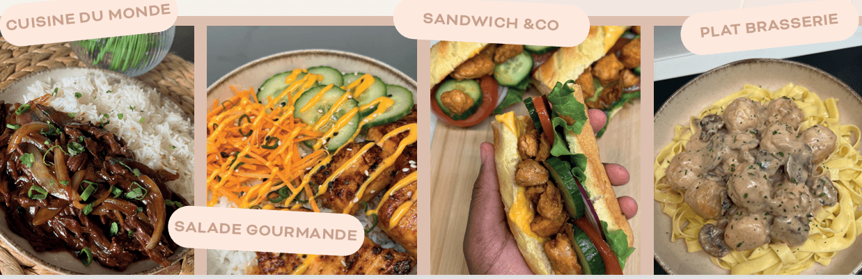 Une grande variété de styles de plats : Cuisine du monde, salades gourmandes, sandwiches & co, plats de brasserie, et bien d'autres encore pour satisfaire toutes les envies !